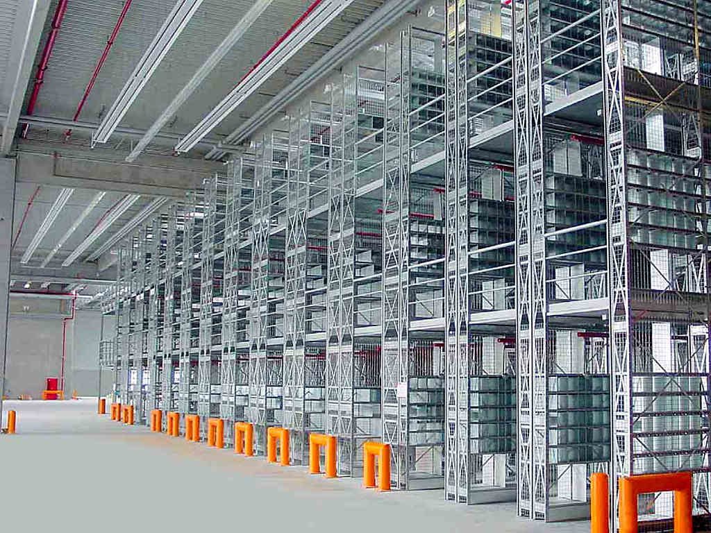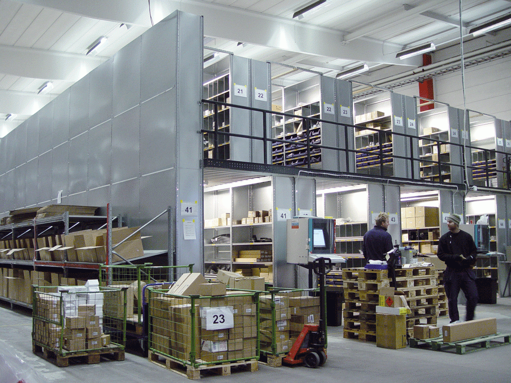 På denne måten kan lagerlokalet utnyttes best mulig, ikke bare med hensyn til plass, men også volum. Oppå reolen som bygges på gulvplan, monteres en messanin. Enten hviler messaninen på kraftig dimensjonerte stolper, eller også velges gjennomgående stolper. De gjennomgående stolpene kan utføres i opp til tre mellomliggende nivåer, og gir således 4 lagringsnivåer. Mellom nivåene kan det installeres vareheis eller rullebaner etc.for transport av gods.